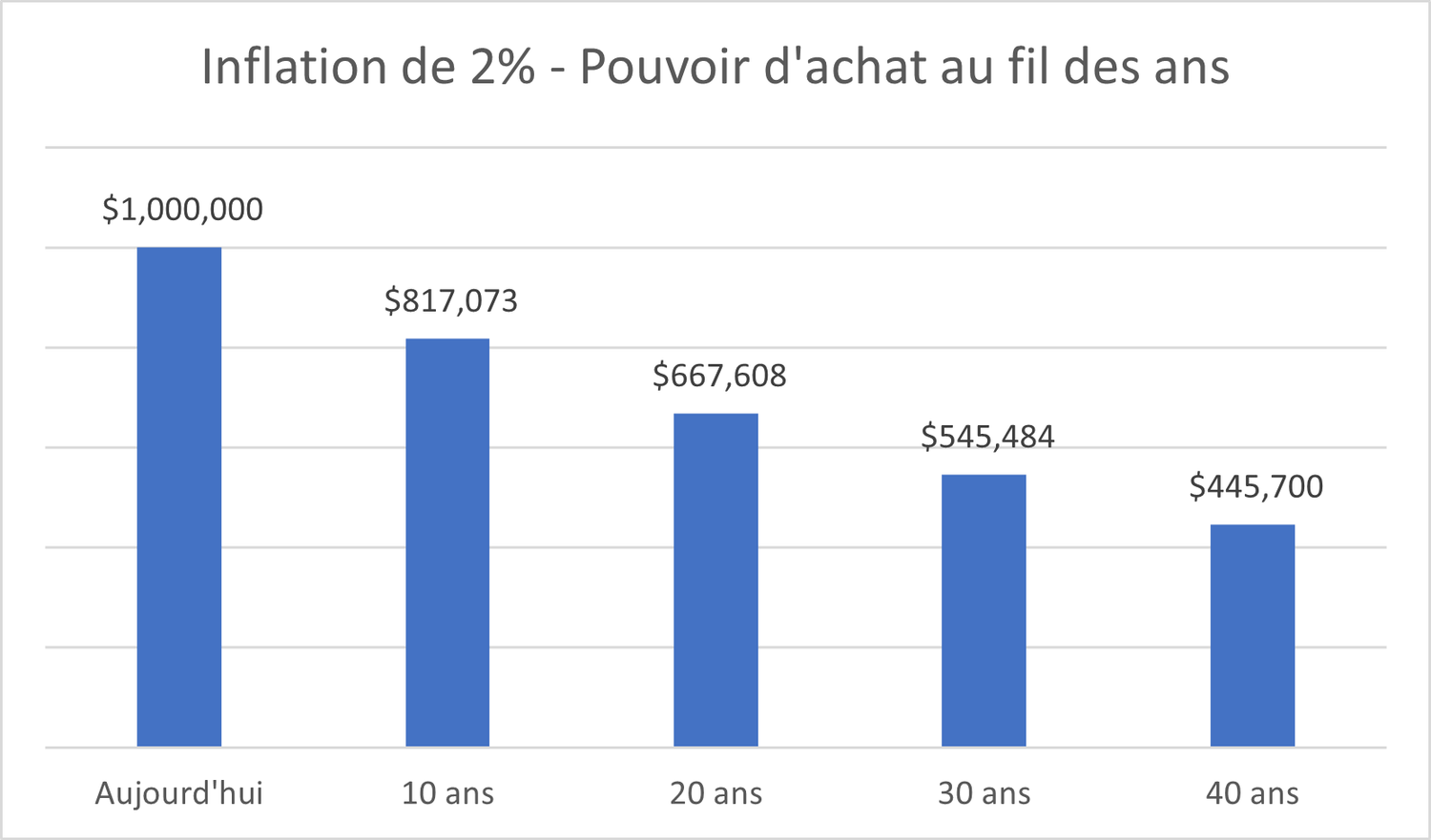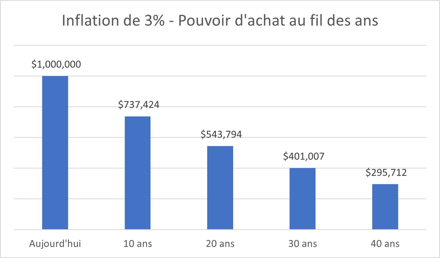 Si l'inflation est légèrement plus élevée que prévu à 3% par année, voici le résultat sur votre pouvoir d'achat :