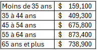 La valeur nette médiane des ménages canadiens, par tranche d'âge, est la suivante: